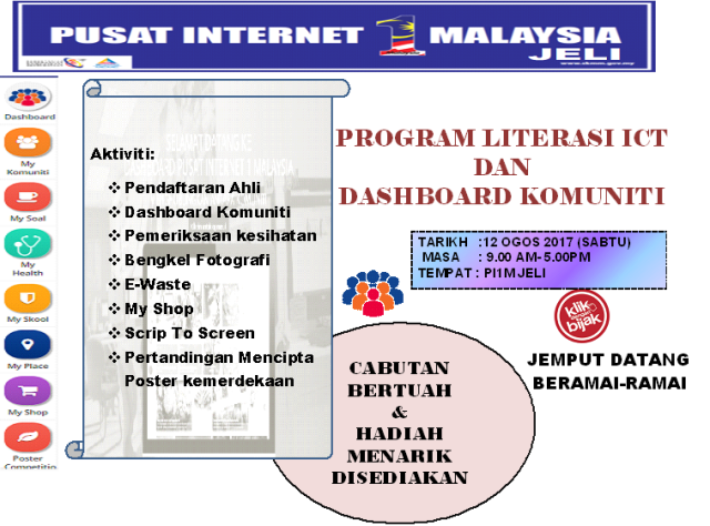 DASHBOARD KOMUNITI & LITERASI ICT Galeri Foto | 24 September 2017 PROGRAM : HARI DASHBOARD KOMUNITI DAN LITERASI ICT TARIKH : 19 OGOS 2017 TEMPAT : PI1M JELI PESERTA : 70 ORANG