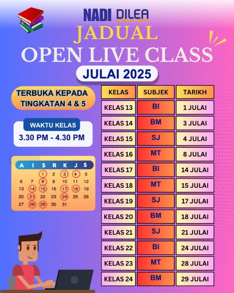 JADUAL OPEN LIVE CLASS JULAI 2025